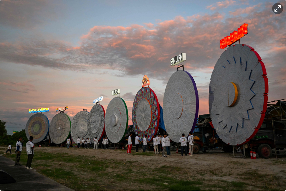 当地灯笼设计师奎瓦(31岁)告诉法新社,制作一组大型灯笼需要20人的团队、耗时三个月完成。