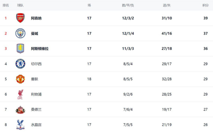 这场比赛让英超争四格局大乱。3大豪门积分相同,切尔西、曼联和利物浦都是29分。切尔西拥有净胜球的优势,排名第4。曼联则升到第5名。利物浦净胜球最少,掉到第6名。不过,曼联比切尔西和利物浦多踢1场,第5的位置并不稳固。