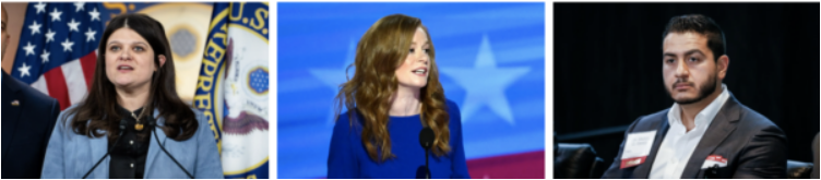 (左)2025年2月6日,联邦众议员海莉‧史蒂文斯(Haley Stevens,民主党/密歇根州)在华盛顿举行的新闻发布会上发表讲话。(中)2024年8月19日,密歇根州参议员马洛里‧麦克莫罗(Mallory McMorrow)在伊利诺伊州芝加哥举行的民主党全国代表大会(Democratic National Convention)上发表讲话。(右)2019年7月23日,医生阿卜杜勒‧埃尔-赛义德(Abdul El-Sayed)在华盛顿的一个小组讨论会上发言。