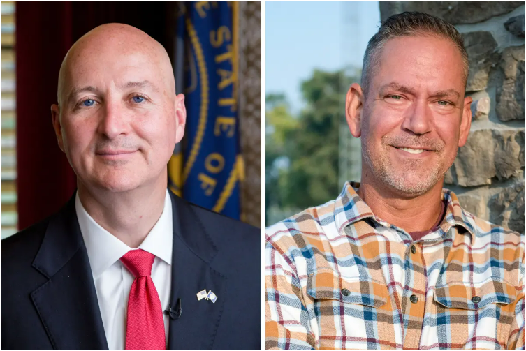 (左图)2021年6月24日,时任内布拉斯加州州长皮特‧里基茨(Pete Ricketts)在内布拉斯加州林肯市(Lincoln)州议会大厦的办公室。(右图)独立候选人丹‧奥斯本(Dan Osborn)近照。里基茨被任命填补内联邦参议员本‧萨斯(Ben Sasse,共和党/内布拉斯加州)退休后留下的空缺,他极有可能赢得该席位,但共和党人仍有可能在2026年面临奥斯本的挑战。