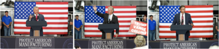 (左)2025年8月21日,联邦众议员巴迪‧卡特(Buddy Carter,共和党/乔治亚州)在乔治亚州桃树市(Peachtree City)的一场活动上向川普总统的支持者发表讲话。(中)2025年8月21日,联邦众议员迈克‧柯林斯(Mike Collins,共和党/乔治亚州)在同一活动上发表讲话。(右)2025年8月21日,前橄榄球教练、共和党参议员候选人德里克‧杜利(Derek Dooley)在同一活动上发表讲话。每位候选人都强调对川普总统的忠诚,力求获得白宫的支持,但总统迄今为止尚未公开表态支持。