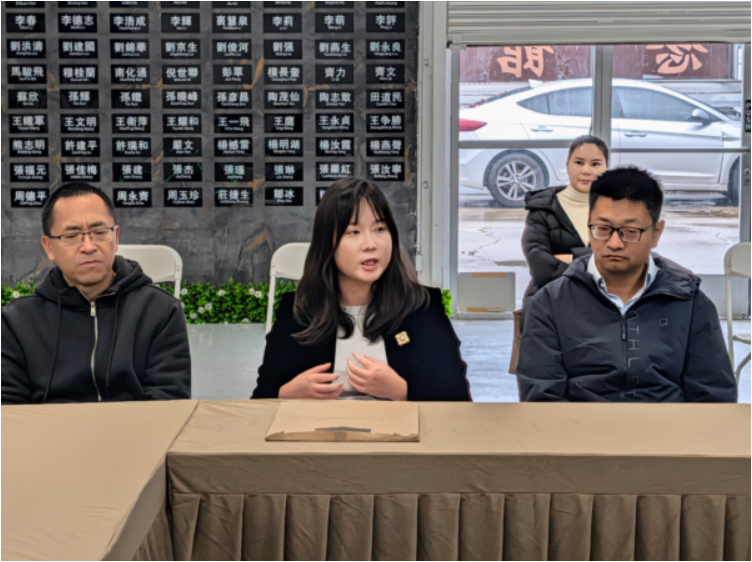 2025年1月4日,中国议会临时筹备委员会在洛杉矶“六四纪念馆”成立。中国民主党成员刘芳(中)发言。