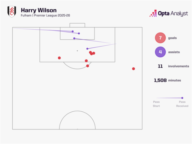 威尔士国脚——哈里·威尔逊,本赛季正在用一种几乎“不讲道理”的方式,接管比赛。