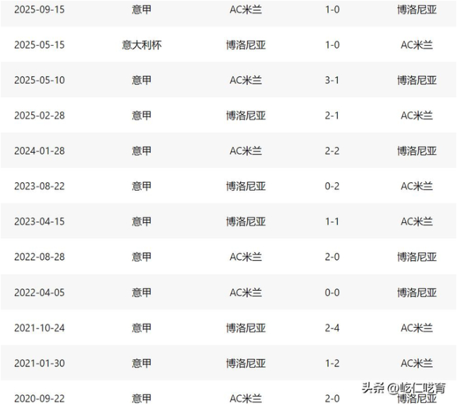 25年的米兰两度客战博洛尼亚,却全部被对手击败--联赛1-2&意大利杯0-1,而如若再加上23年的1-1平局,也就意味着近4次作客达拉拉球场的红黑军团,不过带回了1胜1平2负的成绩。即便米兰近12次客战博洛尼亚也有着7胜3平2负的成绩、近12场联赛客战博洛尼亚同样有着8胜3平1负的成绩,但其实优势都很小。