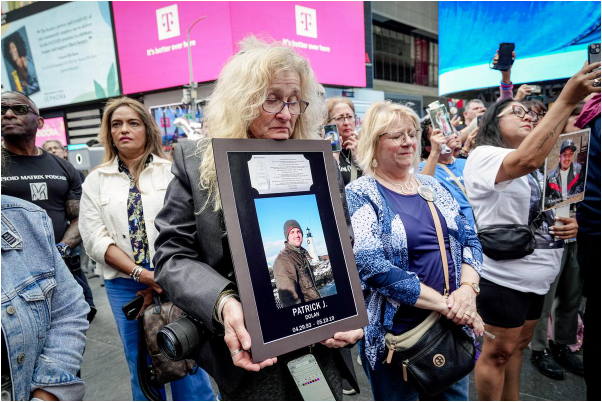 2025年8月21日,在纽约市举行的第四届全国芬太尼预防和宣传日活动上,一些因芬太尼失去亲人的家属出席了活动。