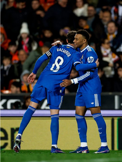阿尔瓦罗·卡雷拉斯和基利安·姆巴佩的进球帮助皇家马德里在周日客场2-0战胜瓦伦西亚,将与西甲领头羊巴塞罗那的差距缩小到1分。