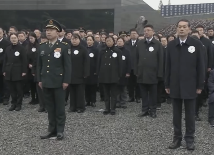 2025年12月13日上午,中共官方在南京举行南京大屠杀死难者国家公祭仪式,张继春中将(前排左)露面。