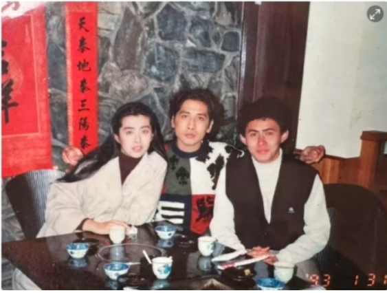 王祖贤(左)1993年与齐秦(中)同框合照。